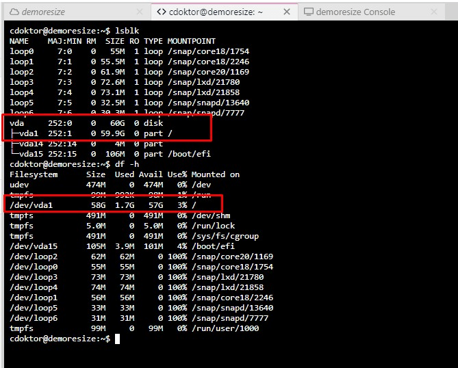Jika partisi disk vm yang kita miliki tidak terupdate saat di cek dengan perintah lsbk dan df -h setelah melakukan resize maka bisa lakukan perintha berikut agar terupdate ke ukuran yang baru.